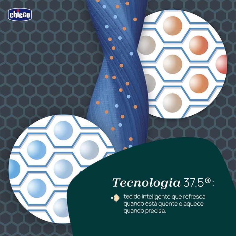 37.5®, que utiliza malha respirável para regular a temperatura da criança, mantendo a sensação de bem-estar em qualquer estação. Esse recurso faz parte do