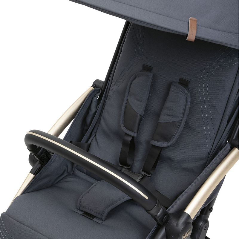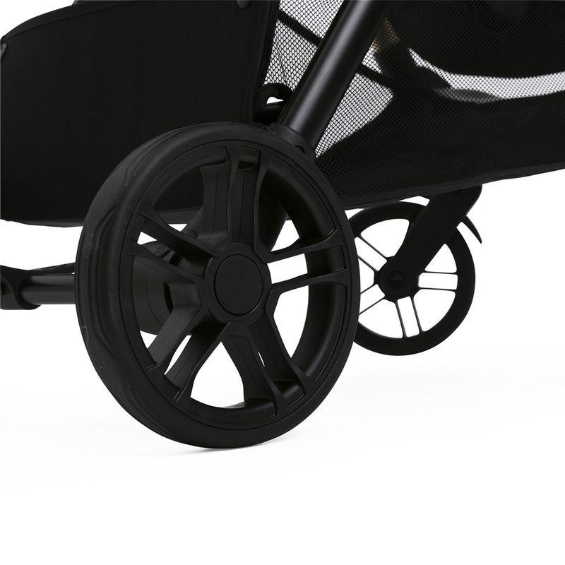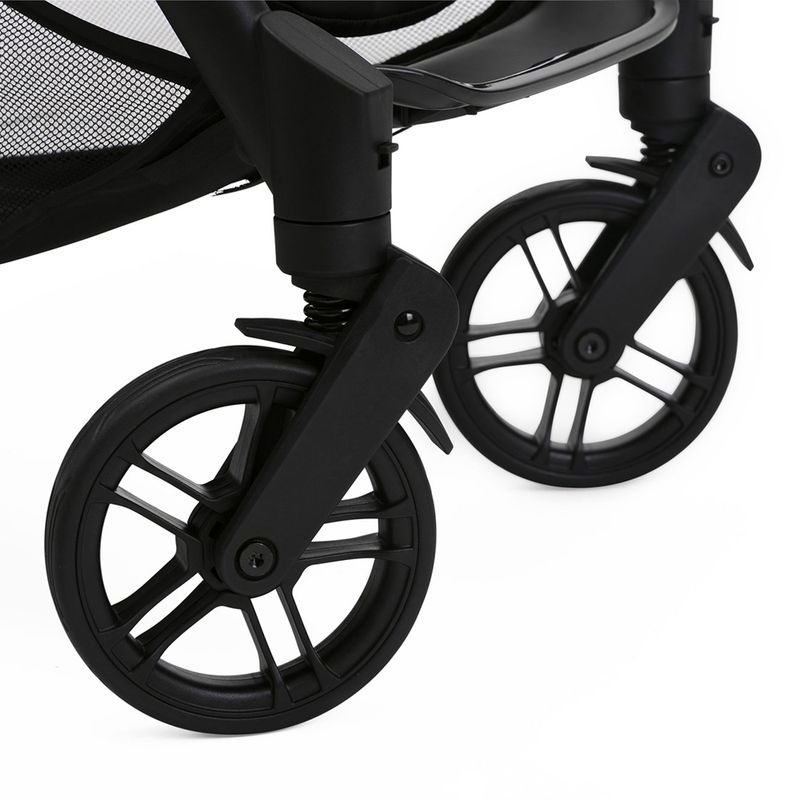 A barra de proteção e os amortecedores nas quatro rodas oferecem passeios com segurança e conforto. A capota extensível é impermeável e possui fator solar UV50+, garantindo mais proteção para o bebê.