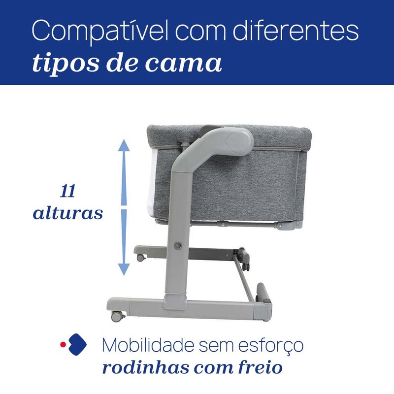 - Máxima Mobilidade: Com as 4 rodas do Next2Me, você move o berço pela casa sem esforço, e com o sistema de encaixe fácil do Mysa, a transição para o passeio é instantânea.